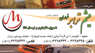 صفحه اول | درباره شركت | خدمات | طرحهاي آينده | رويدادها و اخبار | قوانين حمل و نقل | سيستم ثبت اينترنتي بارنامه گالري عكس | يادداشت مدير عامل | سفارش اينترنتي | حقوق سايت | طراح سايت | ارتباط با شركت تمام حقوق سايت براي شركت ميثم ترابر خراسان محفوظ است. ارتباط با ما: info@MeisamTarabar.com طراحي و پشتيباني وب سايت: رسانه فردا | 09155062103 |