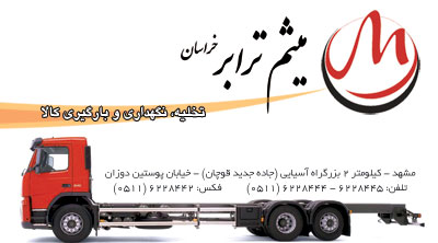 صفحه اول | درباره شركت | خدمات | طرحهاي آينده | رويدادها و اخبار | قوانين حمل و نقل | سيستم ثبت اينترنتي بارنامه گالري عكس | يادداشت مدير عامل | سفارش اينترنتي | حقوق سايت | طراح سايت | ارتباط با شركت تمام حقوق سايت براي شركت ميثم ترابر خراسان محفوظ است. ارتباط با ما: info@MeisamTarabar.com طراحي و پشتيباني وب سايت: رسانه فردا | 09155062103 |